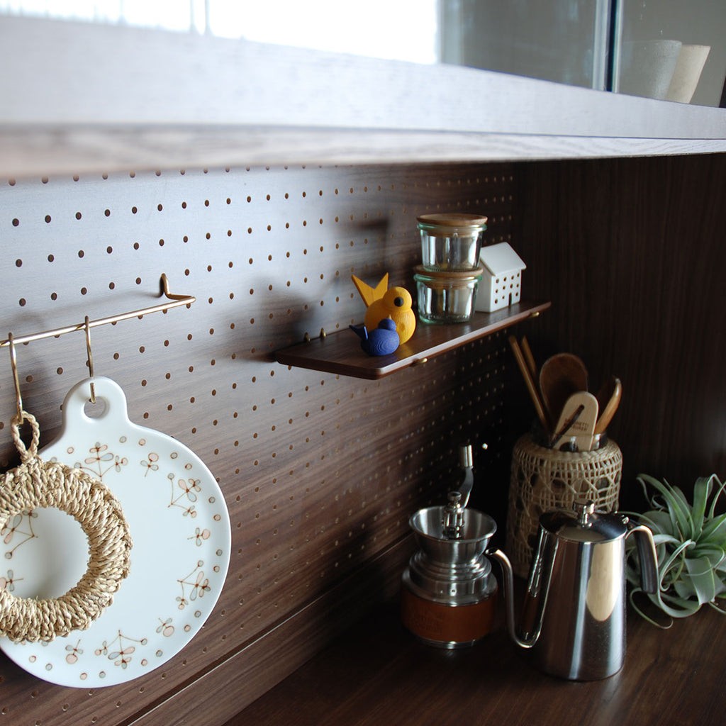 透過洞洞板的設計,可以有效利用櫃體內部的空間,將垂直空間充分發揮,增加儲物容量,提供更多的存放空間。自由撘配掛勾或層板,請盡情發揮創意,享受玩味十足的洞洞板廚櫃!